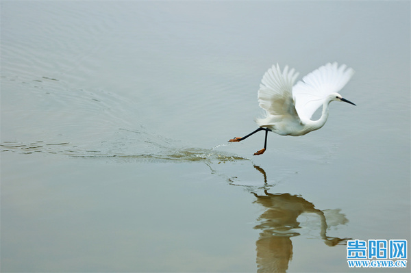 A bird flies over the waters of Guanshanhu Park. [Photo/Guiyang news network]